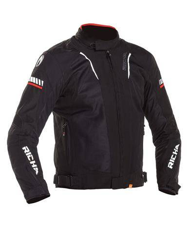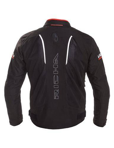 Don’t worry about extreme weather conditions, because this STORMWIND motorcycle jacket was designed to keep you dry and warm, even during a fierce thunder storm. The outside membrane is fully waterproof and won’t let in any rain or humidity. Getting too hot inside your jacket? Just use the ventilation system to let the air flow and to keep your body dry. 3M reflection and D3O protectors are integrated to guarantee your safety, night and day.   · Matches well with Airvent EVO and Airvent EVO 2 trousers · Mix of 420D Cordura and high density mesh panels · Detachable waterproof 10.000 mm Aquashell LTD membrane · D3O® protection at shoulders, elbows and back  · V-cut fit · Adjustable at the waist · Two water repellent side pockets with zipper · Connection zipper (short) · Collar hook