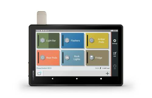 Pair Tread with the compatible Garmin PowerSwitch™ digital switch box (sold separately) to enable on-screen control for your vehicle’s 12-volt electronics — light bars, differential locks and more.