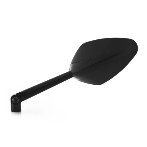 The Veloce mirror exclusively combines two different materials. Billet aluminum body (obtained by 3D precision machining) and an aeroDynamic polymer shell. Besides making it more eye-catching, the use of two different materials makes it lighter. AeroDynamic shaping helps prevent turbulence at speed. A large reflective surface area, which complies with European homologation standards, ensures, along with the adjustment system and convex anti-dazzle glass, an optimal field of view. Its eye-catching design adapts perfectly to even the grittiest supersport models.
