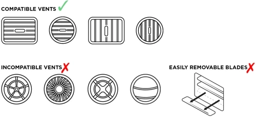 For the Vent Mount to perform optimally your vehicle must be equipped with the correct style of vents: