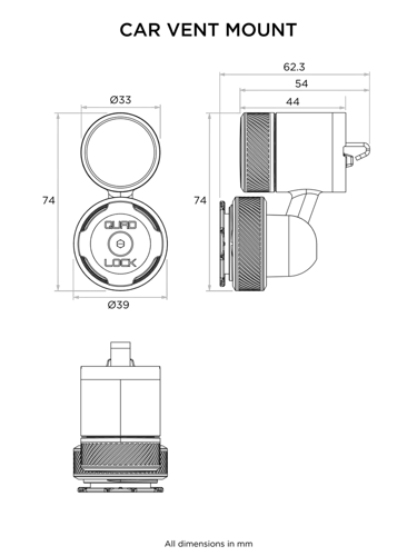 Suitable for use with all Quad Lock® Cases and Universal Adaptors, the Quad Lock Vent Mount is a secure way to conveniently mount your phone to your car's vents.