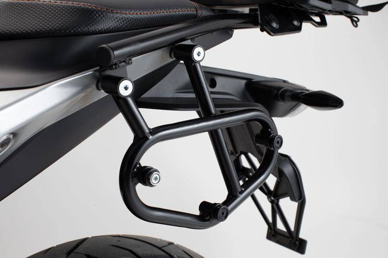 - Dedykowana pod dany model motocykla konstrukcja oznacza łatwy montaż z jednej lub dwóch stron, również dla motocykli z wysokimi wydechami