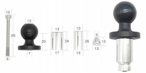 - Główka ma średnicę 25 mm, czyli jest kompatybilna z większością dostępnych na rynku mocowań telefonów, aparatów itp.