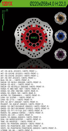 NG TARCZA HAMULCOWA PRZÓD DAELIM 125 '00-'08, PEUGEOT 125 SUM '09-'12, TYŁ HONDA CRM 125 '91-'98 (220X58X4) (3X85MM) WAVE