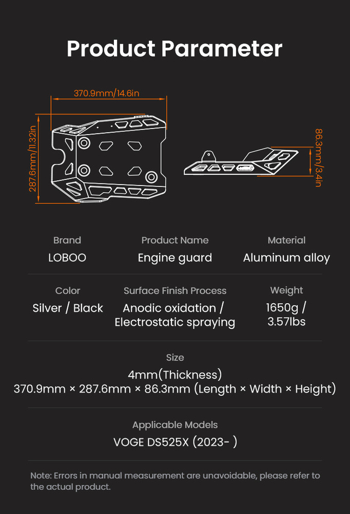LOBOO Osłona silnika do VOGE DS525X / Dashixiong 525 (10.3.13821.001.21)