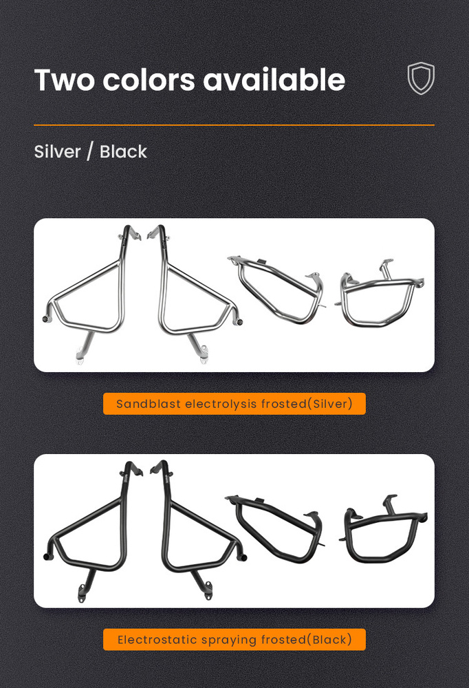 Precyzyjnie zaprojektowane gmole dedykowane dla konkretnego modelu motocykla, aby zapewnić niezawodną ochronę przed uszkodzeniami mechanicznymi i otarciami.