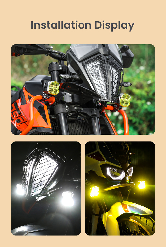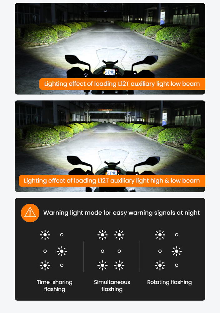 - Wiele trybów: Światła mijania, światła drogowe i tryby ostrzegawcze, aby poradzić sobie w różnych warunkach jazdy.