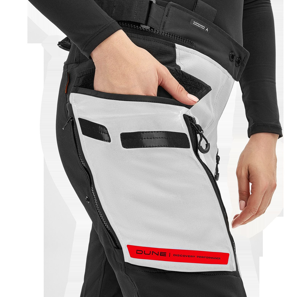 - Spodnie SHIMA DUNE LADY to turystyczne spodnie motocyklowe dla kobiet, oferujące odporność na różne warunki pogodowe oraz wysoki poziom bezpieczeństwa dzięki materiałowi typu ripstop i protektorom GFLEXX poziomu 2.